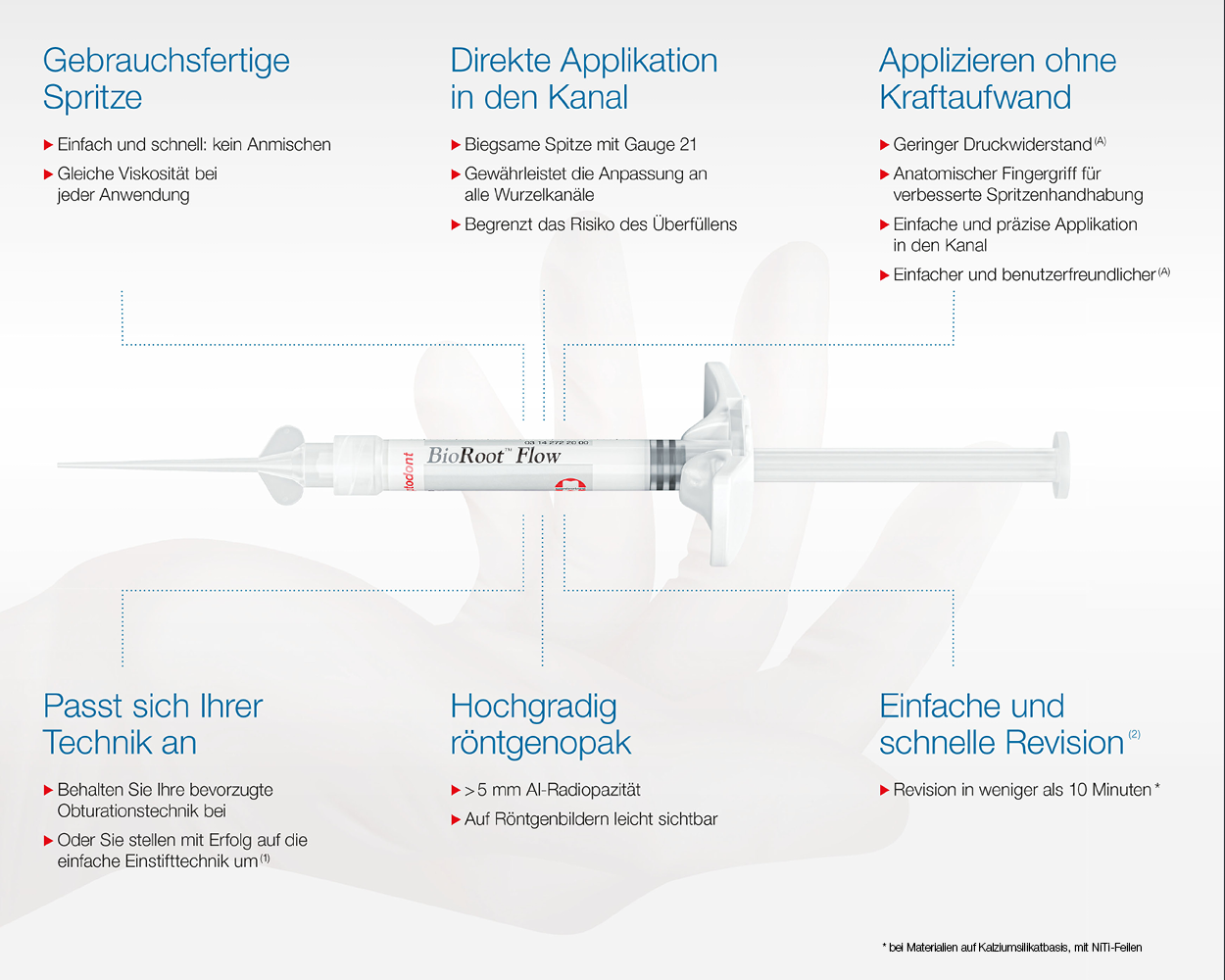 - Ausgezeichnete Haftung auf Dentin und Guttapercha