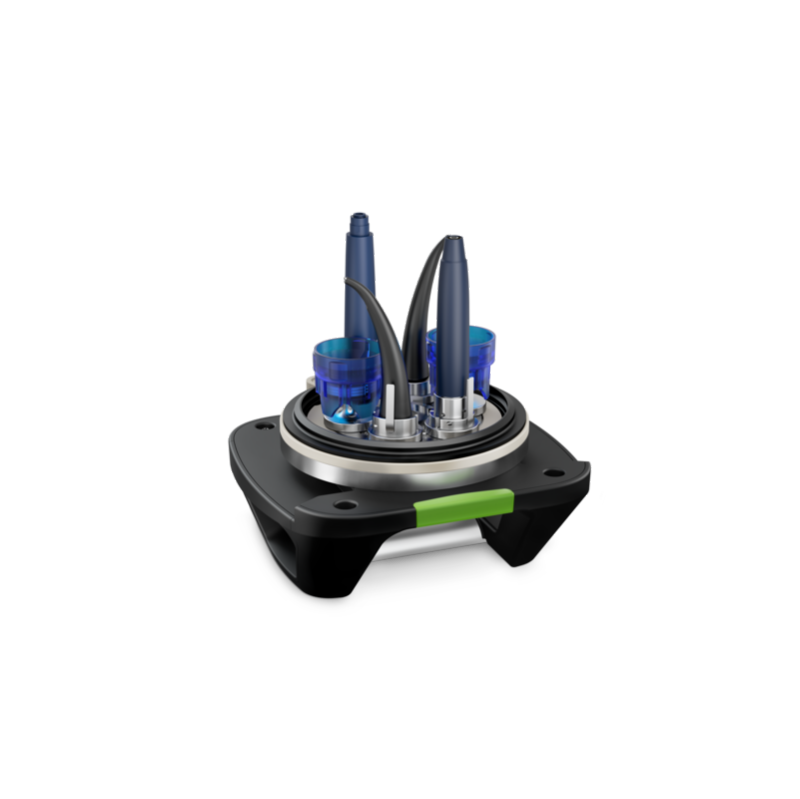 DAC Universal D reinigt, schmiert (falls erforderlich) und desinfiziert2 bis zu sechs Hand- und Winkelstücke und Turbinen sowie Ultraschallhandstücken und -spitzen, Düsen von Multifunktionsspritzen und Pulverstrahlgeräten sowie Pulverstrahl-Handstücken in ca. 15 Minuten – inkl. Kühlung.