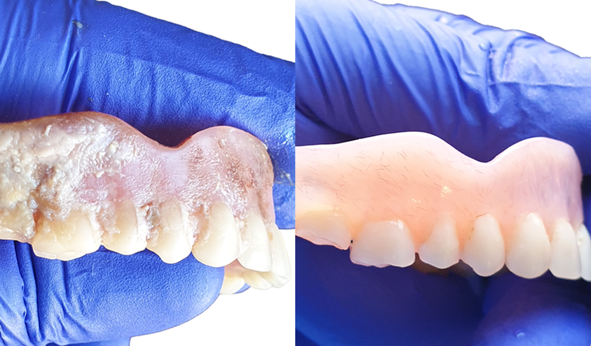 „Bitte reinigen und hygienisch aufbereiten." Ein solcher Auftrag sorgt im Dentallabor meist für wenig Begeisterung; stark verschmutzte Prothesen mit hartnäckigen Ablagerungen, unschönen Gerüchen, Verfärbungen … Doch die professionelle Reinigung von Prothesen und Schienen gehört zur zahntechnischen Arbeit und ist zudem unverzichtbar für die Mundgesundheit des Patienten.