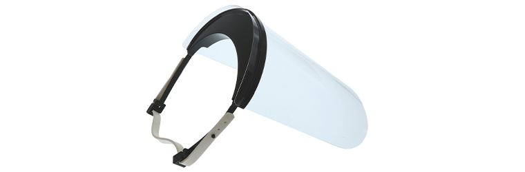 Gesichtsschutz aus leichtem (22 g) Hart-PVC, kann bequem über Korrekturbrillen und Mundschutzmasken getragen werden, geht weit über den Kinnbereich hinaus und bietet Schutz für Augen, Nase und Mund, Schutzbereich ca. 240 mm x 230 mm. Hoher Tragekomfort durch weiches Stirnpolster. Durch den Klett- Flauschverschluss lässt sich der Gesichtsschutz an jeden Kopfumfang anpassen.