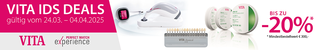 20% auf VITA Material (VITA CAD/CAM, VITA VIONIC, VITA Verblendmaterial, VITA Charakterisierung, VITA Presskeramik).